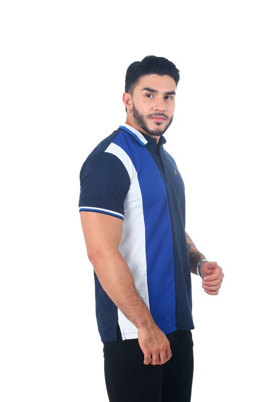 Camiseta Polo Combinada AZUL OSCURO BLANCO LILA-007G