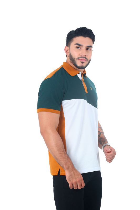 Camiseta Polo Combinada MILITAR BLANCO OCRE-061D