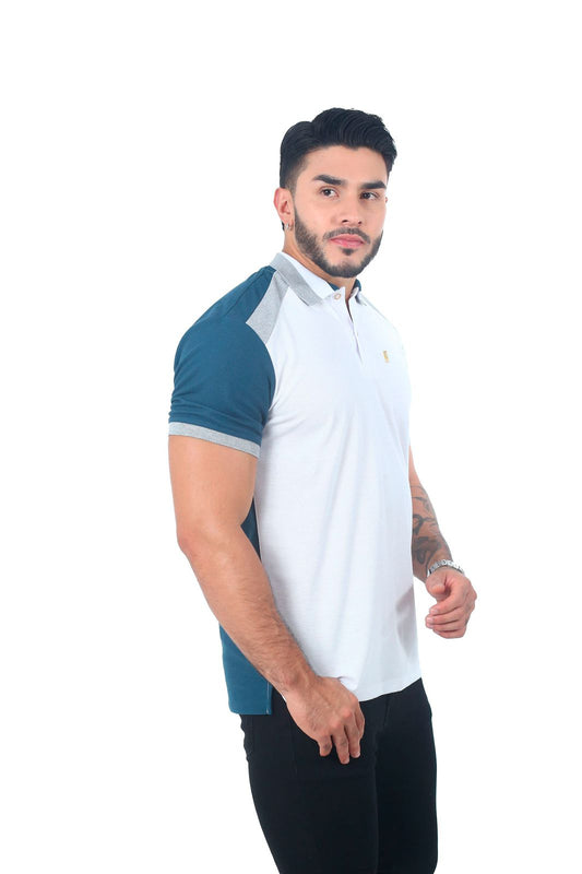 Camiseta Polo Combinada BLANCO JASPE PETROLEO-062D