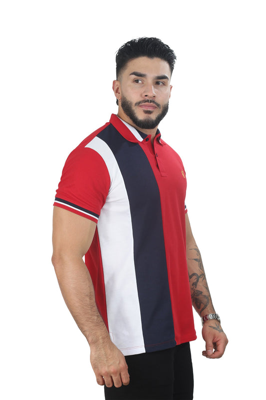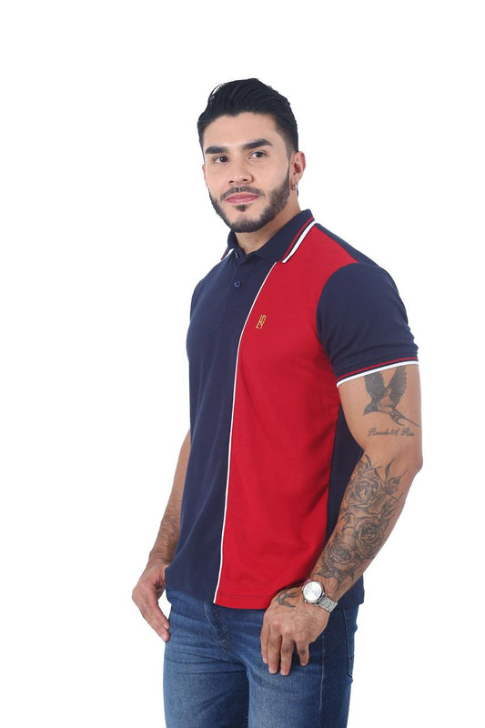 Camiseta Polo Combinada AZUL OSCURO ROJO BLANCO-047A