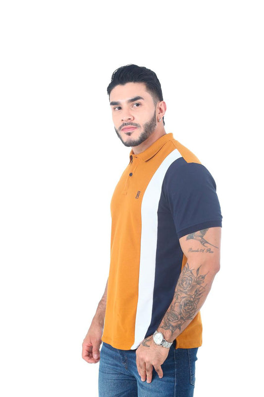 Camiseta Polo Combinada OCRE BLANCO AZUL OSCURO-058C