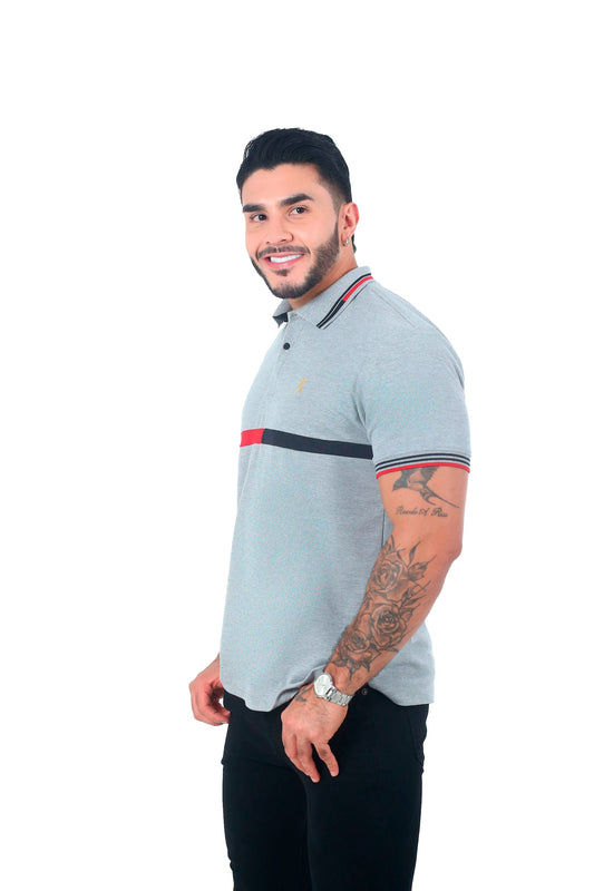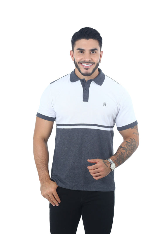 Camiseta Polo Combinada GRIS BLANCO-056C
