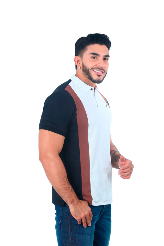 Camiseta Polo Combinada NEGRO BLANCO CAFE-058F