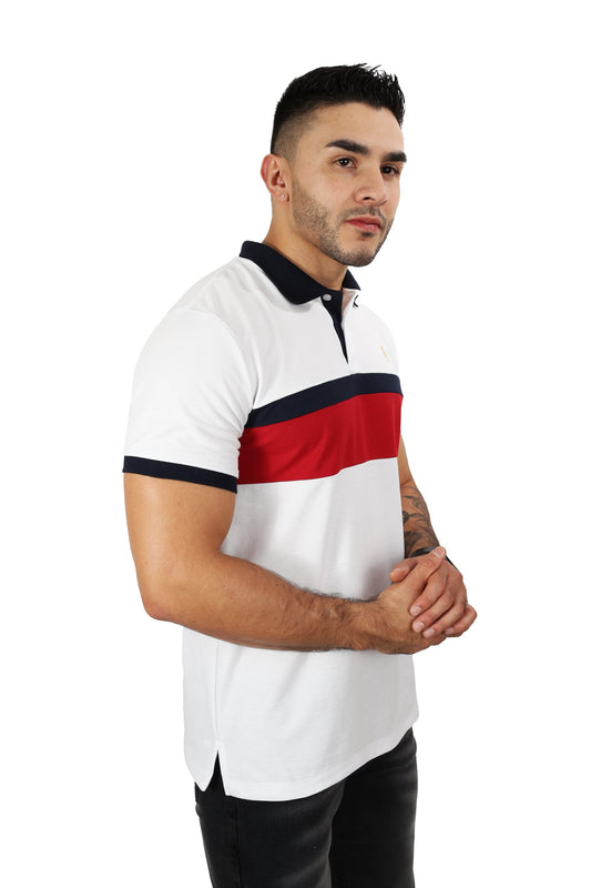 Camiseta Polo Combinada BLANCO ROJO AZUL-033A