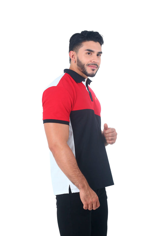 Camiseta Polo Combinada ROJO BLANCO NEGRO-061B