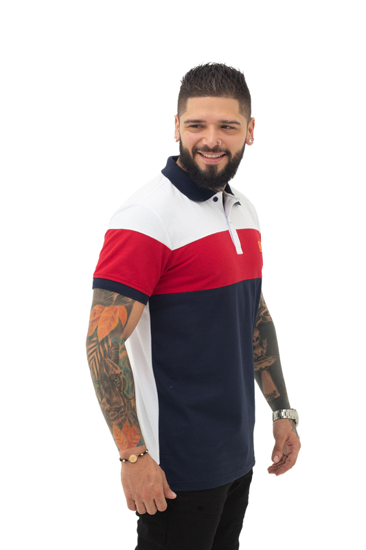 Camiseta Polo Combinada ROJO BLANCO AZUL OSCURO-038J