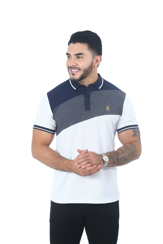 Camiseta Polo Combinada BLANCO CROSS AZUL OSC-064D