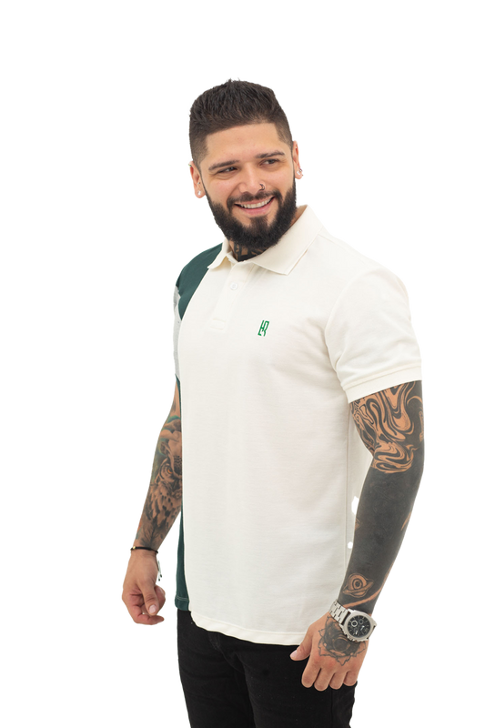 Camiseta Polo Combinada JASPE MARFIL VERDE BOTELLA- 068D