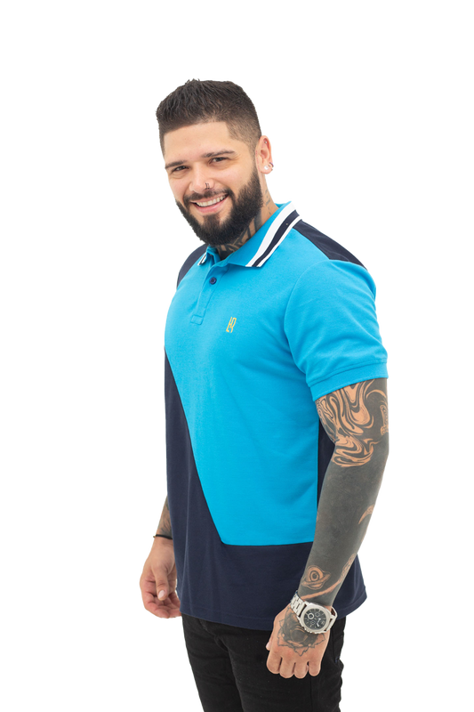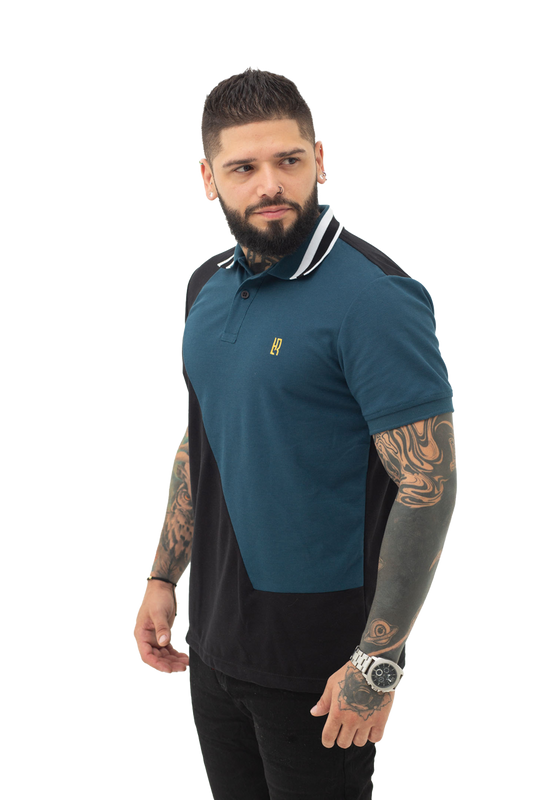 Camiseta Polo Combinada AZUL OSCURO TURQUEZA- 069C