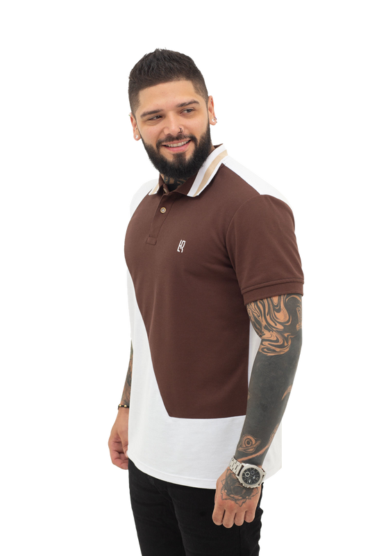 Camiseta Polo Combinada BLANCO CAFÉ- 069D