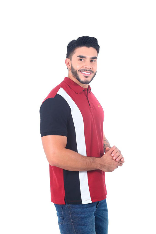 Camiseta Polo Combinada VINOTINTO BLANCO NEGRO-058B